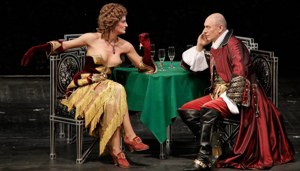 Второй момент, на который мне хотелось бы обратить внимание и именно из-за которого я ушел в антракте, не дождавшись "главного" (как было указано на афише в одном из отзывов) в этом шоу - развязки - это запредельное количество банальных пошлостей, хорошо знакомых поколению моих родителей (50-55 летних людей) и которые из уст, мягко говоря, зрелого главного персонажа, звучат очень мерзко. Врядли меня можно назвать ханжой, так как "Snatch" ("Большой куш") в оригинале (с его обилием fuckов) или в озвучке Гоблина с огромным количеством мата, а также в целом творчество Гая Ричи я нахожу очень забавным. Я не хочу подробно останавливаться на пошлых моментах в этом спектакле, но я не могу понять, как можно включать в театральную постановку такие жуткие банальности, как "что мужчина делает стоя, женщина сидя, а собака, подняв лапу" или "только обещайте не пить кофе прямо в постели" (аналогичного в этом спектакле можно найти массу всего, правда, я был только на первом акте). Аргумент о том, что это априори должна быть пошлая постановка я не принимаю, так как в том же спектакле "Дон Жуан" возможностей создавать пошлый антураж совсем не меньше, но я там ничего подобного не увидел.