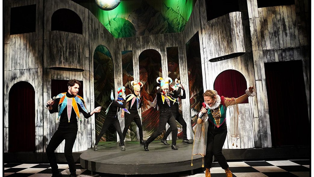 А может быть, потому что сказка совершенно иррациональна. В ней напрочь отсутствуют законы и логика. Узнал волшебник Дурандарте, что у короля Дерамо проблемы с выбором невесты, – превратил своего слугу в статую и подарил королю, чтобы статуя подсказывала, какая из претенденток лжёт. В результате король женился по любви, а статуя ожила и ушла. Зачем дарил? Он ещё и второй подарок сделал, из-за которого потом жуткие катаклизмы произошли! И это всё ничем не объясняется. Просто так происходит, это же сказка. Но, согласитесь, в том, что не нужно всё объяснять, есть своя прелесть! Артисты могут просто подурачиться, вволю поиграть.