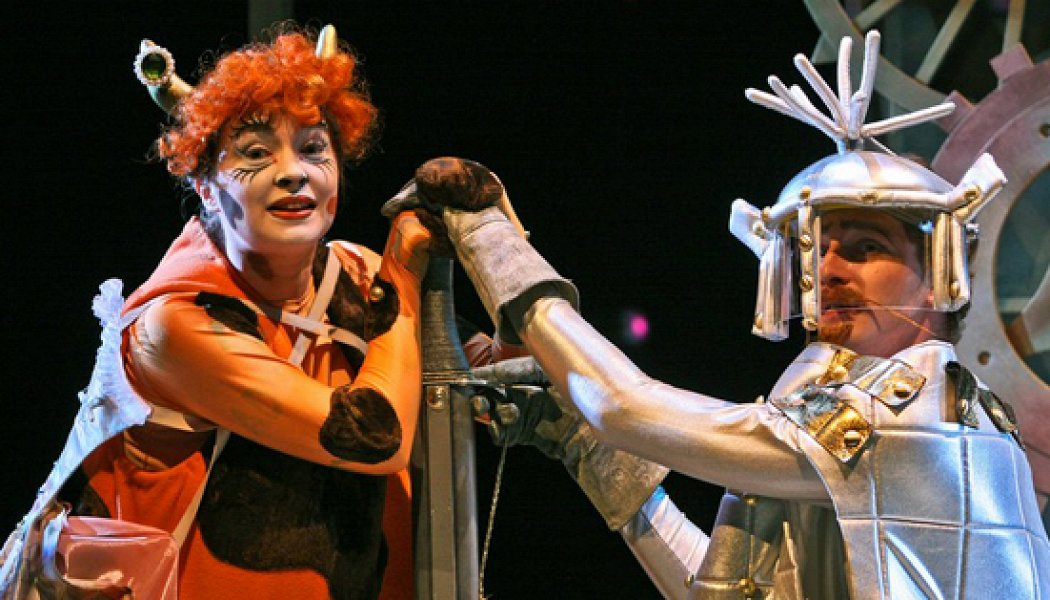 В театре главы Союза театральных деятелей Александра Калягина детские спектакли получаются не хуже взрослых. Если не сказать лучше. Уже прежняя «Тайна тетушки Мэлкин» ничуть не отдавала халтурой, а «Королевская корова» переплюнула ее и по бюджету, и по вложению творческих сил. Специально для спектакля было снято несколько мультфильмов — их проецируют на экран, а актеры взаимодействуют с изображением, будто оно живое. Вместе с актерами на сцене действуют затейливые механические устройства, манипуляторы — это вообще конек Александра Калягина. Но начать надо с того, что «Королевская корова» — это современная русская сказка (авторы Титова и Старотожский). Хотя в ней и действуют король с принцессой и придворными. История начинается с того, что принцессе Анне надоели балы и приемы, и тогда она отправляется на дачу. Где заправляет «Ее светлейшее сверкательство», а попросту рыжая корова Зорька. Которая называет себя дочерью Солнца и уверена, что приносит счастье, что поначалу кажется ее фантазией, а в финале выходит самой настоящей правдой. Под ее чутким руководством негодяи несут наказание, добро вознаграждается, а влюбленные, как и положено, идут под венец.