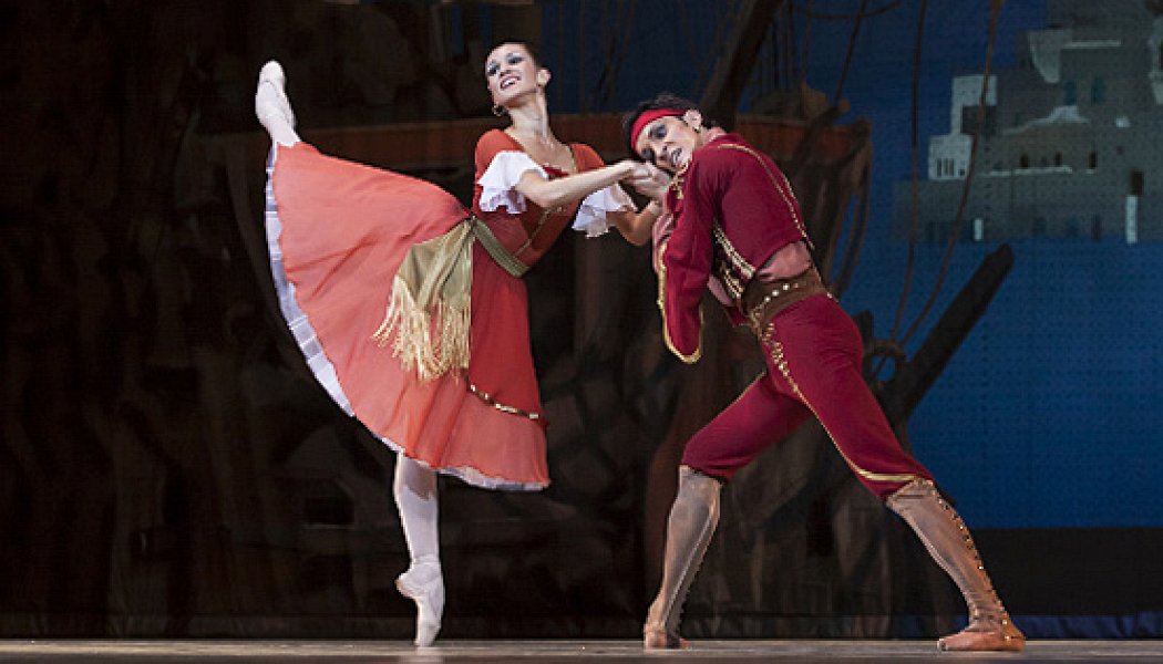 Красочный балет Адана о романтической истории между пиратом Конрадом и невольницей Медорой в постановке Юрия Григоровича начисто лишен трагических изломов и философских рефлексий: любовь и страсть не драма, а танцевальный фейер верк.