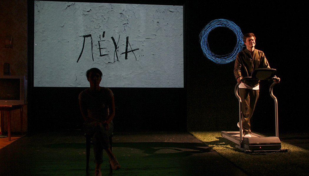 Все действие происходит на малой сцене МХТ, театра, который чаще других выпускает премьеры, дает многие привилегии режиссерам по части выбора материала и вообще бежит, обгоняя время и пространство.