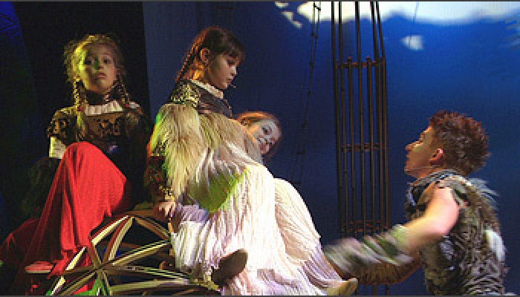 Театр Луны взял курс на мюзикл задолго до премьеры «Лиромании», и даже до того как получил вольготное помещение на Малой Ордынке взамен крохотного подвала в центре города. Сергей Проханов уже тогда открыл при ГИТИСе факультет мюзикла, а теперь еще и детскую студию при театре. По этой причине перед спектаклем звучит приглашение в студию мальчиков до десяти лет. Мальчики, видимо, в большом дефиците — в противоположность девочкам, и замысел прелюдии к «Королю Лиру», видимо, был продиктован нуждой в их трудоустройстве. Таким образом взрослые дочери Лира получили по малолетнему двойнику, а чтоб персонажи не наступали детям на пятки, из сюжета изъяли всяких там Эдмундов и Эдвардов. Король Лир остался в узком семейном кругу, чтобы никто уже не мешал дочерям гнобить его и сживать со света. Что касается самого света, то за его внешнее обустройство отвечал сценограф Юрий Хариков, установивший по краям сцены валуны и перегородивший пространство двумя бревнами — то они служат корабельными реями, то балконом, а то деревом, поваленным северным ветром. О том, что дело происходит где-то на широте Шпицбергена, также говорят меховые вставки в костюмах и кристаллические бусы, свисающие сзади сцены длинными нитями, — то ли это слезы Лира, то ли застывшая в воздухе ледяная взвесь. Протагонист Евгений Герчаков соответственно климату поет голосом, словно слегка севшим на морозе, так что лучше всего этот оригинальный актер, похожий не столько на самого Лира, сколько на его постаревшего шута, выглядит в драматичных речитативах. Другие персонажи не столько танцуют, сколько чертят в воздухе руками и ногами таинственные знаки и поют чисто, хотя не слишком выразительно. Впрочем, и эти танцы, и эти голоса, и даже простодушно спрямленный сюжет имели бы смысл, если бы в их основе лежала выдающаяся музыка. Иное дело — музыка композитора Журбина. Скромная и неброская, она сочинялась словно вдогонку спектаклю, как комментарий к нему, не претендуя на то, что арии и дуэты запомнит кто-то еще кроме тех, кто получает за их исполнение зарплату.