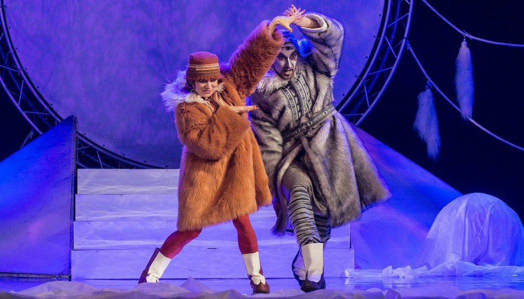 Спектакль переносит зрителей в далекий северный край, где живут саамы. Мы увидели красивые национальные костюмы северного народа, их танцы и традиционную саамскую музыку йоки.