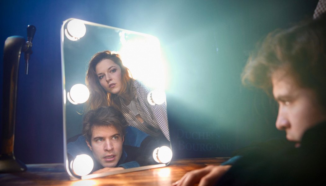 Очень интересно оформлено сценическое пространство: мы словно находимся внутри бара, первые пара рядов даже сидят за барными столиками.