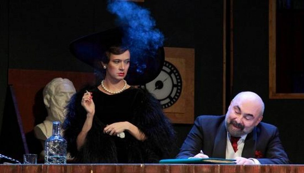 Собственно, сатирический компонент - противопоставление миллионерши и отряда небогатых мужчин разной степени порядочности и привлекательности, а также присущая Шоу ирония - явно несколько выветрились с годами (по-крайней мере в версии театра Содружество актеров Таганки, которую мы увидели), уступив на сцене место тому, что ближе всего к незатейливой комедии положений (хотя ничего особенно случайного и непредвиденного на сцене не происходит), в основе которой взаимоотношения полов, а вовсе не классов.