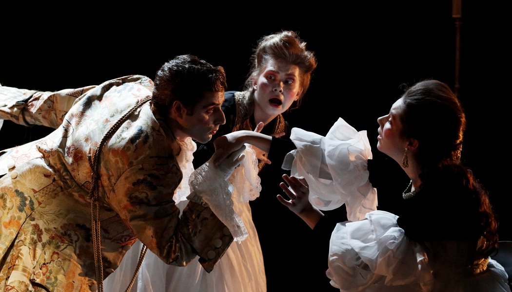 Обычно спектакль начинается после того, как все зрители рассаживаются в зале. Эта постановка задумана иначе. Когда открываются двери для публики, действие уже идет. Зрители оказываются в зале, где актеры готовятся к репетиции. Кто-то разучивает слова, кто-то занят музыкой, кто-то оттачивает движения. Кто-то одевает костюмы и наносит грим – все лица актеров выбелены, а щеки украшены яркими румянами, что характерно для того времени.