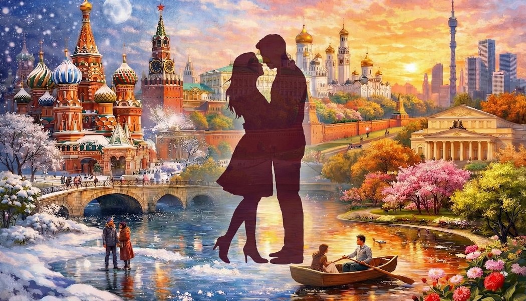 "Москва-город любви". Это - музыкальный спектакль о прекрасном городе и его притягательной силе, где сбываются мечты. Артисты театра "Вишневый сад" п/р А. Вилькина приглашают в путешествие по Москве. На сцене оживают картины из знакомых фильмов и звучит прекрасная музыка: "Когда весна придёт не знаю", "Старый клён", "Три года ты мне снилась".