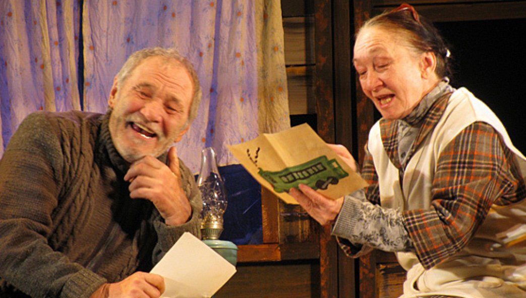 Камерный спектакль по пьесе башкирского драматурга Флорида Булякова, в котором задействованы лишь два актера, рассказывает о заброшенной пожилой паре, живущей в ожидании писем и посылок от детей.