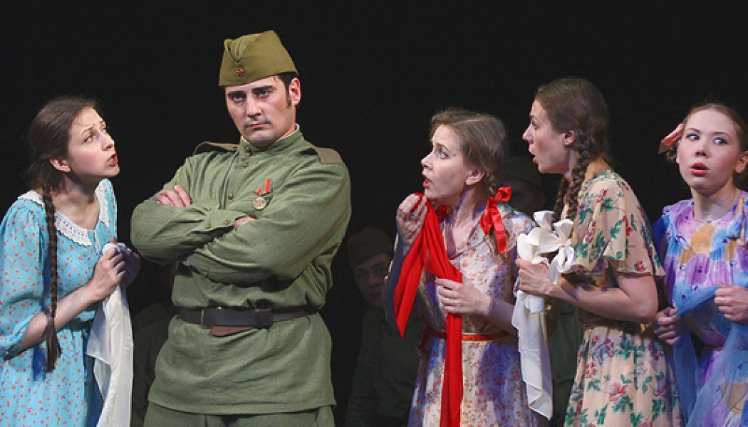 В спектакле не захлебывающегося пафоса лозунгов и агитаций. Мы видим живых людей, которые не по своей воле оказались на войне:
