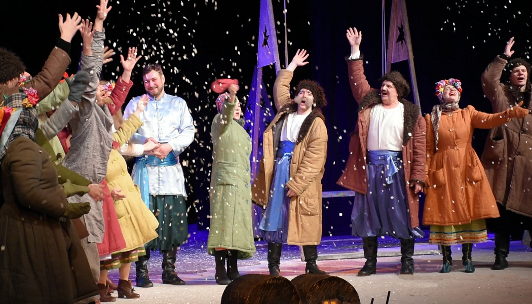 Последний день перед Рождеством прошел, и наступила ясная зимняя ночь. Девчата и парубки отправились колядовать, петь песни и веселиться. Только Вакуле-кузнецу невесело — красавица Оксана всё никак из головы не идет. Вот и связался Вакула с чертом, чтобы Оксане угодить — достать ей царские черевички — да замуж красавицу взять.