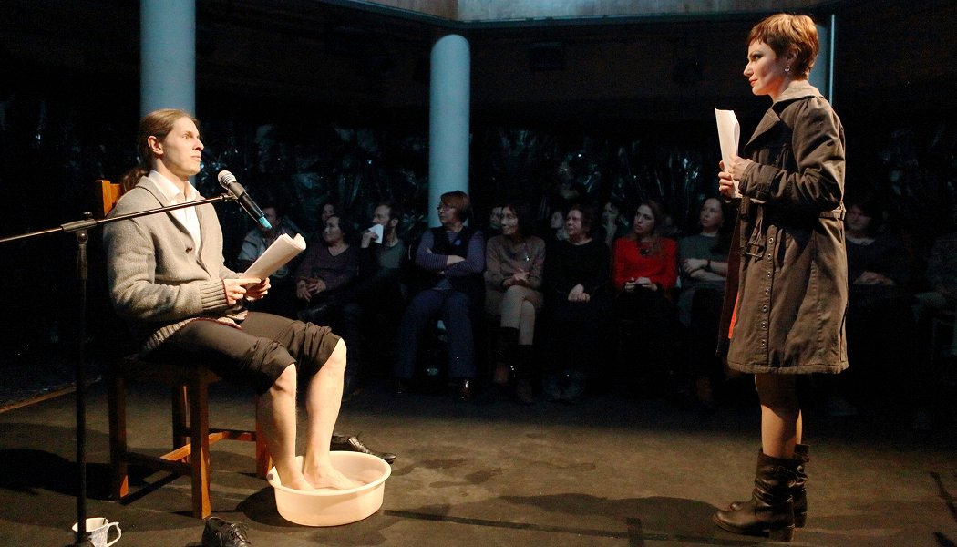 В спектакле участвует режиссер Александр Огарев, который коротко выступил перед началом спектакля. Использование такого способа как читка (а не полное заучивание текста) он объяснил, некоторой незаконченностью, экспериментальностью постановки. Мне это не очень понятно. Берешься делать спектакль - делай что-то цельное. А ставить коротенькие пьесы могут и в заводской самодеятельности.