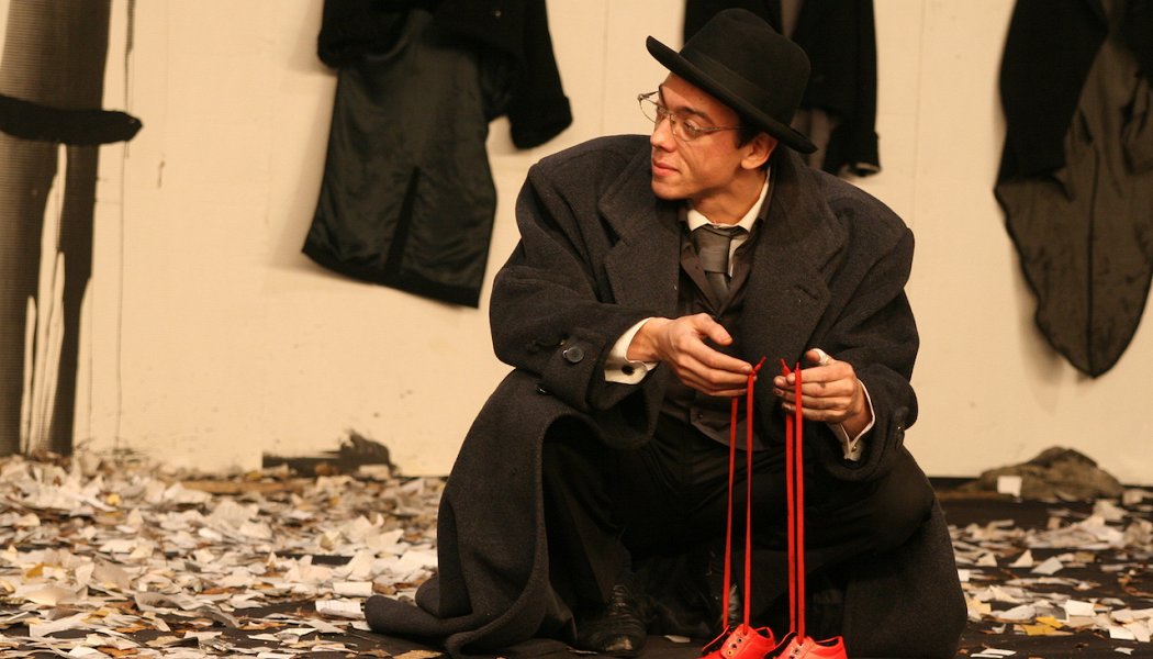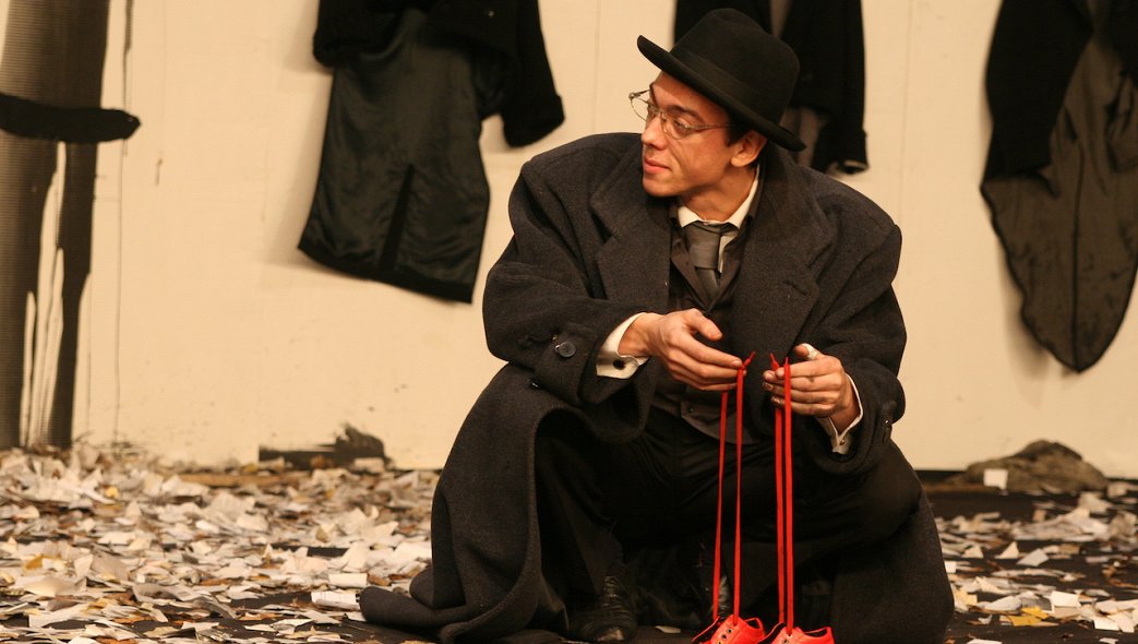 Спектакли Крымова очень сложно пересказывать. «Opus №7» легче, зато не хочется: обе его части рассуждают на избитые темы и пользуются растиражированными образами (если речь о холокосте — так непременно обувь грудой). Но в каждом из них есть сцена, которая отпечатывается в памяти намертво. Вроде битвы жестяных роялей под тему нашествия из «Ленинградской» симфонии. Или начала «Родословной», когда лицедеи в пестрых одежках выплескивают на картонную стену плача по ведру черной туши, пришпандоривают к кляксам лоскуты — и кляксы превращаются в евреев. Вокруг кляксы по картону актеры проходятся ножом, пытаясь заглянуть, что там стоит за тенями предков. А там черная дыра, из которой на сцену врывается ветер, засыпая и сцену, и ошарашенную публику обрывками газет и сухой листвы.