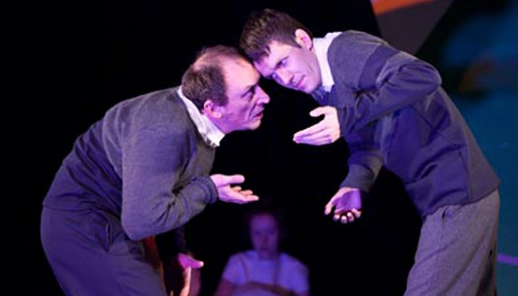 Актеры, соединенные в пары (догадайся ещё, кто из них профессионал), двигаются под живую (прекрасное трио) медитативную музыку. Каждая пара – две конгруэнтные фигуры, которые как частички пазла создают целый мир. Один дополняет другого, каждый следует за движениями партнёра, как мысли плавно перетекают, споря и соглашаясь друг с другом.