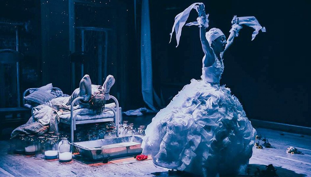 Сам текст классического произведения полностью вошёл в пьесу и практически остался неизменным. Наверное, именно так современные диджеи меняют ритм и аранжировку старых песен, добавляют повторы наиболее значимых строк. Но образные решения и неожиданные мизансцены, «добавленные» режиссёром, заставляют видеть прочтённые в школьные годы строки совсем по-другому. В этом спектакле соединены современные ритмы и старинные русские романсы. У героев весьма странные костюмы, а в декорации – не менее странные трехлитровые банки (их сто штук на сцене) с белой пеной внутри. Что в них: наркотик, сладкая вата?