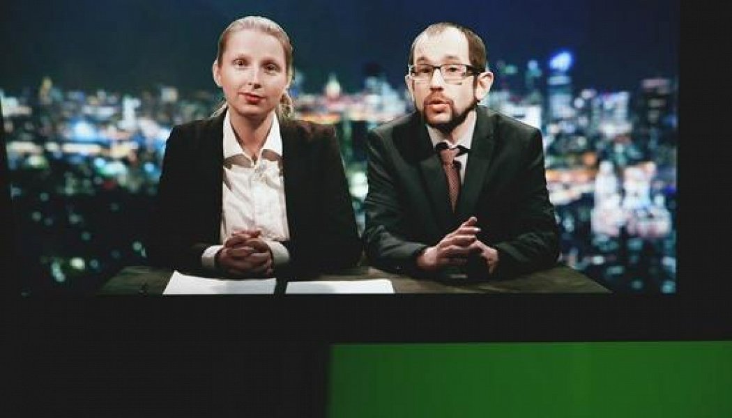 Краткая сага о телевидении и влиянии его на людей. На сцене, за столом - две говорящие головы на фоне хромакея. Валентин Самохин (сверху строгие пиджак, галстук, рубашка, снизу шорты профессионального путешественника) и Алиса Дмитриева, воплощение интеллигентного гламура. В зале - люди, пару десятилетий назад сознательно отказавшиеся от телесмотрения; креативный класс.