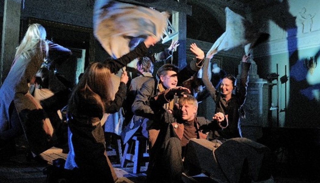 «Игрой о русском душегубстве» называет свой спектакль сам режиссер Иван Стависский, в Пушкинском центре поставивший лучшие свои спектакли последних лет. За основу взяты «История Пугаче ва» и «Капитанская дочка» Пушкина, а также казачий фольклор. В центре внимания режиссера — механизм возникновения кровавой бани, смуты, девальвация человеческой жизни. Откуда это берется? Как светлые цели и мечты о счастье превращаются в ад и кровавое месиво?