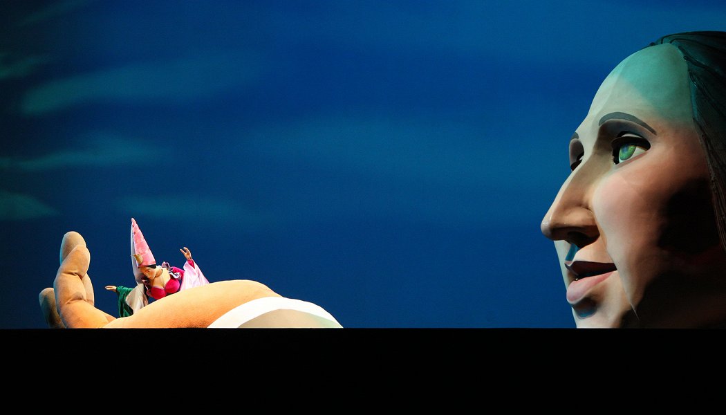 Именно эта фраза пришла мне в голову в финале спектакля, когда Гулливер всплыл вместе с парусником из под трепыхающегося полотна, изображавшего "набегающую волну".