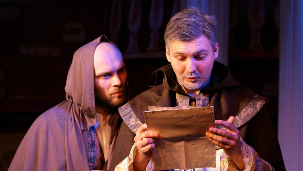 Первая пятиактная комедия драматурга соединяет в себе средневековый фарс и элементы итальянской комедии масок. В режиссуре художественного руководителя Сергея Тимофеева к названным жанрам добавились клоунада и драма.