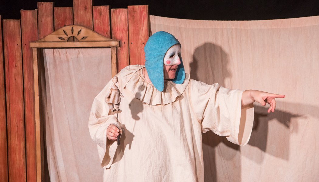 Вернёмся к спектаклю! В чём же его необычность? Режиссер Анна Коонен использовала сразу два жанра: русский балаган и итальянская комедия дель арте. На героях либо надета маска, либо она нарисована на лице с помощью белил. Несмотря на то, что театр кукольный, в этом спектакле куклы появляются перед зрителями намного реже, чем актёры. Это "Петрушки"; деревянные куклы, изображающие главных героев; большая тканевая кукла. Один из героев периодически надевает большую кукольную голову.