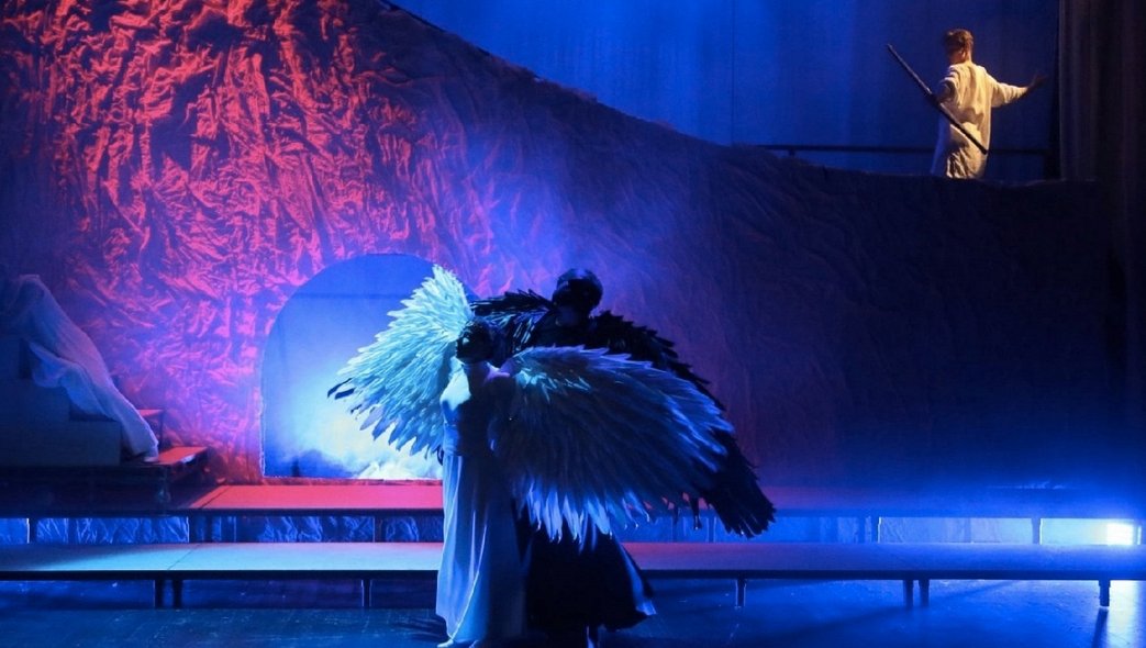 В спектакле «Сказка о царе Салтане» мы становимся свидетелями коварного заговора против новорожденного богатыря Гвидона и его матери, которые находят своё спасение на чудесном острове. Спасший хранительницу острова, прекрасную царевну Лебедь от злого чародея Гвидон получает от неё таинственный дар перевоплощения в летающих насекомых.