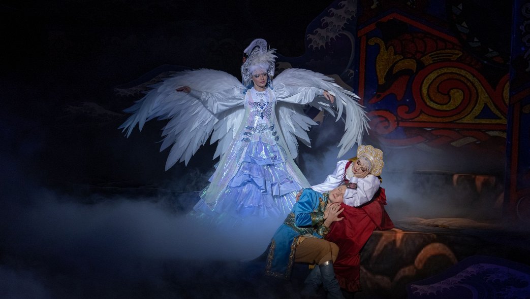 -Идеально вписавшуюся в сказку мелодию «Улетай на крыльях ветра» Бородина из оперы Князь Игорь в исполнении Царевны Лебедь (Карина Балашова)