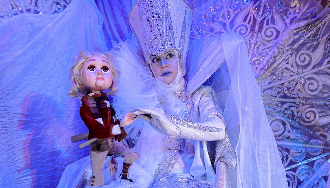 Спектакль бережно следует сказке Андерсена, но при этом оживляет её с помощью удивительных марионеток и актёрской игры. Всё начинается с мрачной истории о злом тролле и его зеркале, осколки которого разлетаются по миру. Здесь куклы‑тролли буквально «проплывают» над зрительным залом — дети аж пригнулись, настолько это выглядело реалистично!