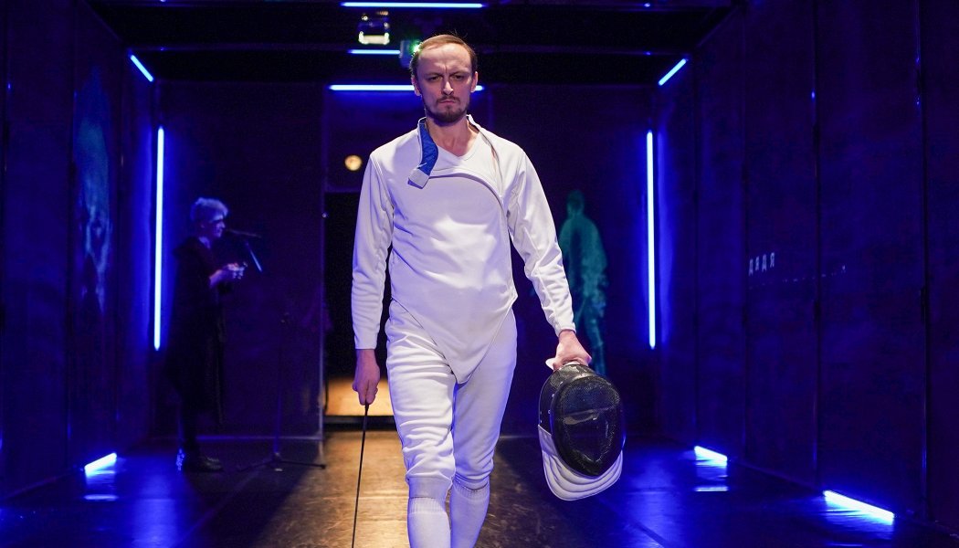 Вас сажают будто в цирке - вокруг арены, затянутой сеткой (создающей изолированное киберпространство), куда сейчас запустят настоящих саблезубых тигров - героев нашего времени. Посреди клетки появляется социопат Гамлет, прокручивающий в своем телефон "печальную повесть" о принце Датском. Зритель видит содержимое экрана смартфона на стенах, на потолке, на полу и даже на своих руках. Время от времени в эту каморку заезжают на гироскутерах другие герои шекспировской трагедии, чтобы в словесном баттле виртуальной игры сразиться с программистом Гамлетом.