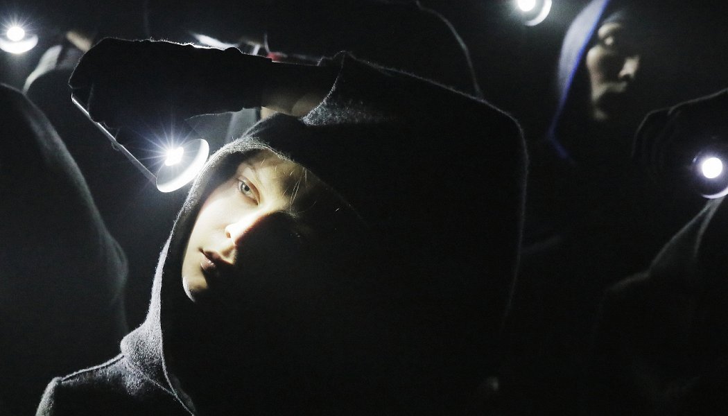 Антон Оконешников продолжает экспериментировать с техническими возможностями Новой сцены, усаживает зрителей на крутящуюся платформу и отправляет в будущее. Несмотря на то, что в основе либретто к футуристической опере «Победа над солнцем» Крученого, Хлебникова и Малевича, концепция режиссера сильно отличается от прототипа: путешественники, под ритуальные танцы и завывания актерского курса Ивана Благодера, проходят несколько этапов в другом изме рении, инакость которого создается с помощью спецэффектов.