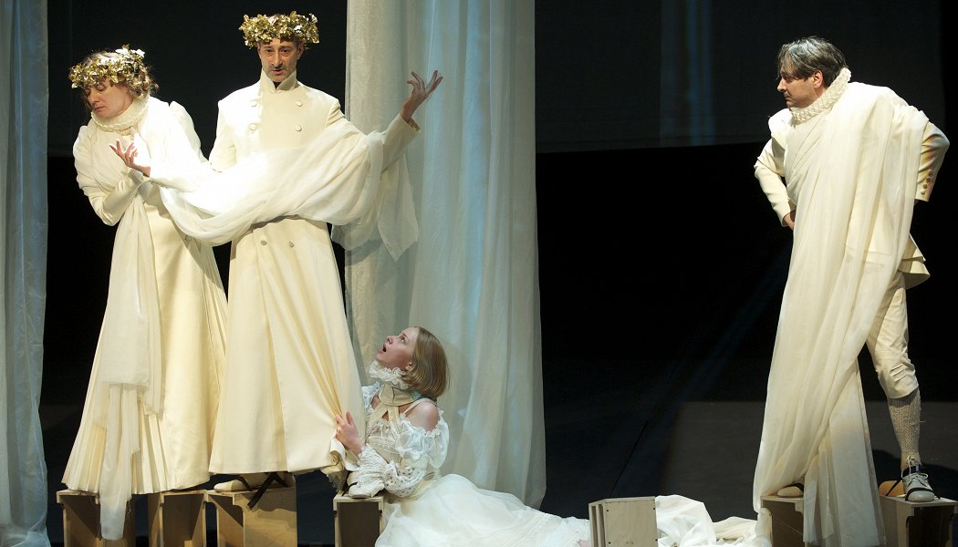 Три года назад не стало Петра Фоменко. С его уходом театр, труппу которого составляют несколько поколений учеников мастера, погрузился в кризис — без громких провалов, но и без очевидных удач. Репертуар качественно разделился на две части: при Фоменко и после. При — фантастической легкости и естественности стихия сложносочиненного авторского, в высшей степени интеллигентского (если не сказать аристократического) театра с неизменным и ненавязчивым ироничным прищуром. После — сумбурные мелодрамы в исполнении стажеров театра, попытки Евгения Каменьковича ухватиться за ускользающую легкость в грузных спектаклях по Пиранделло и Салтыкову-Щедрину, одномерные опыты с современной драматургией и хореографией. В этом контексте «Сон в летнюю ночь», поставленный македонцем Иваном Поповски (представителем ранних «фоменок») одновременно для новобранцев и старожилов театра, — не просто большая удача. Это счастливое возвращение из комы.