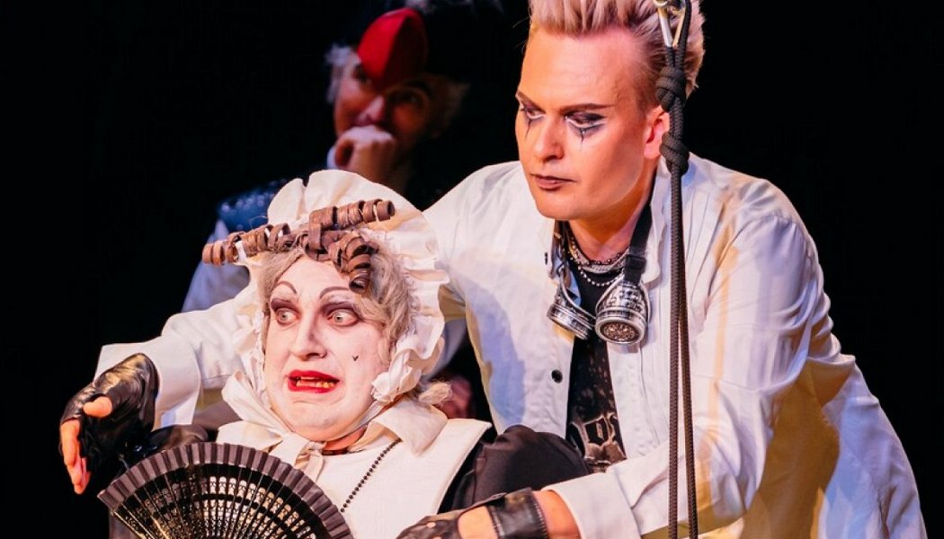 Дальше на сцене, больше всего похожей на миниатюрный цирковой манеж (зритель делает подсознательный вывод, что сейчас ему тут покажут "цирк"), появляются два весьма взлохмаченных молодых человека совершенно панкового вида: в дырявых джинсах, майках с надписями и кожаных куртках, усыпанных шипами и стразами. Помимо лохматости волосы парней местами весело раскрашены в позитивные оттенки ярко-розового и зеленого. Слом шаблона, как он есть.