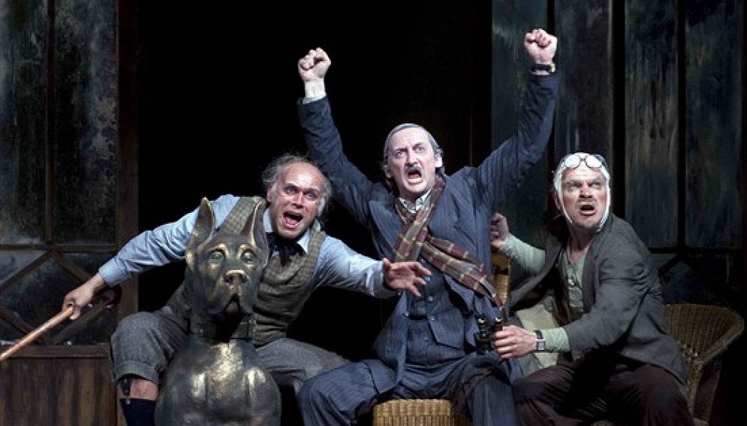 Можно бы удивиться, что «Сатирикон», где прежде ставили только драматургов-тяжеловесов, вдруг пустился в легкомыслие, взявшись за сентиментальную комедию о пожилых чудаках. Но в том-то и дело, что сантименты для сатириконовской премьеры вовсе не самоцель. В «Сатириконе» пьесу о стариках, которую обычно старики же и играют, использовали для демонстрации того, в чем у «Сатирикона» нет соперников, — актерских трансформаций. Играют тридцатилетние: Денис Суханов, Максим Аверин, Григорий Сиятвинда, в очередь с Сятвиндой Антон Кузнецов. Грим, парики, наклеенные мохнатые брови, которыми старят актеров, в постановке Константина Райкина — самая незначительная часть дела. Каждому герою придумана особая пластика, голос, любимая поза, походка, комичные стариковские привычки. У Рене, которого играет Аверин, интонации сэра Пиквика и протез ноги с фиксатором под коленом: сел — нога вперед, нажал рычажок — нога согнулась; каждое приседание — реприза. Суханов в роли Густава — засушенный желчный аристократ, перебирающий ногами, как аист. Когда, повинуясь позыву мочевого пузыря, Густав отправляется шарить рукой в ширинке, зал с замиранием ждет, найдет ли на этот раз, что ищет. Сиятвинда играет Фернана, который «худо-бедно уживается с осколком, застрявшим у него в черепе», и отключается на половине фразы. Их взаимодействие между собой — каскад аттракционов, где каждое движение выверено и каждая интонация в точку. Словом, в «Сатириконе» играют не французский бульвар, а иного рода комедию — старинную итальянскую комедию масок, из которой попросту изъяли слуг и влюбленных, оставив препираться между собой Капитана, Манифико и Панталоне.
