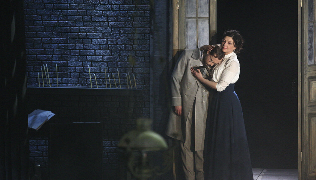 Как-то так получилось, что для меня одним из основных персонажей Сестер всегда был барон Тузенбах. Возможно, виной всему первая книжка с портретом героя, в которого я, десятилетняя девочка, когда-то влюбилась. Я все не могла понять, почему мне его так жаль, жаль не просто как человека, трагический финал жизни которого уже известен. Я подсознательно чувствовала, что его смерть бросает тень на всех героев. Когда я смотрела свои первые Три сестры в Citizens Theatre в Глазго, Тайлер Коллинз с таким чувством умолял “Please tell me something”, что хотелось крикнуть Ирине: «солги ты ему, он ведь идет умирать!» У Виктора Княжева это «Скажи мне что-нибудь» звучит с таким бессильным отчаянием в конце, что в этот момент в моей голове наконец-то сложился пазл и я поняла, за что не люблю эту пьесу. Не за ее черную депрессивность и пессимистичность, нет. В моем подсознании закрепилась мысль, что Тузенбаха убил не Соленый. Его убило безразличие. О дуэли знали все, все понимали, что прожженный дуэлянт застрелит близорукого барона:
