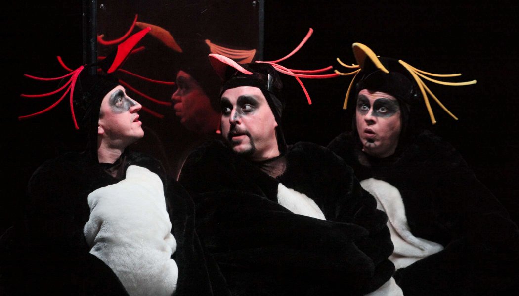 Из всего многообразия фауны Ульрих Хуб, по сценарию которого поставлен спектакль, выбирает в качестве действующих лиц, чьим глазами мы и увидим события великого потопа - 4 птиц. Ну, как птиц.. 3 пингвина и 1 голубь.