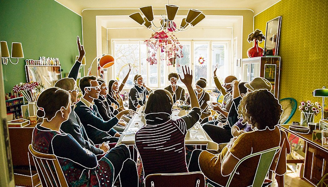 Спектакль немецкой команды Rimini Protokoll, как водится, идет не в театре. Зрители собираются в обыкновенной квартире. Купившим билет адрес сообщат заблаговременно. Да и, собственно, спектаклем предстоящее зовется условно; гостям предлагается обсудить все то, что они и так не прочь обычно пообсуждать, придя к кому-нибудь домой в гости. По сути же «В гостях. Европа» — это настольная игра про геополитику, в ходе которой можно узнать много нового об устройстве мира и о себе, в частности.