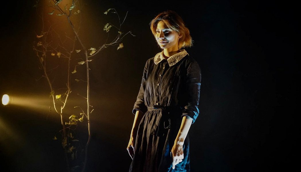 То как лаконично и красиво сделана сцена, какой и должна быть на моноспектакле. Идея с землёй (или песком) на подиуме и то, как песчинки сыпались при каждом движении с её платья, подсвеченные будто радиоактивные частицы или сочащаяся из её поражённого тела жизнь.. очень образно.