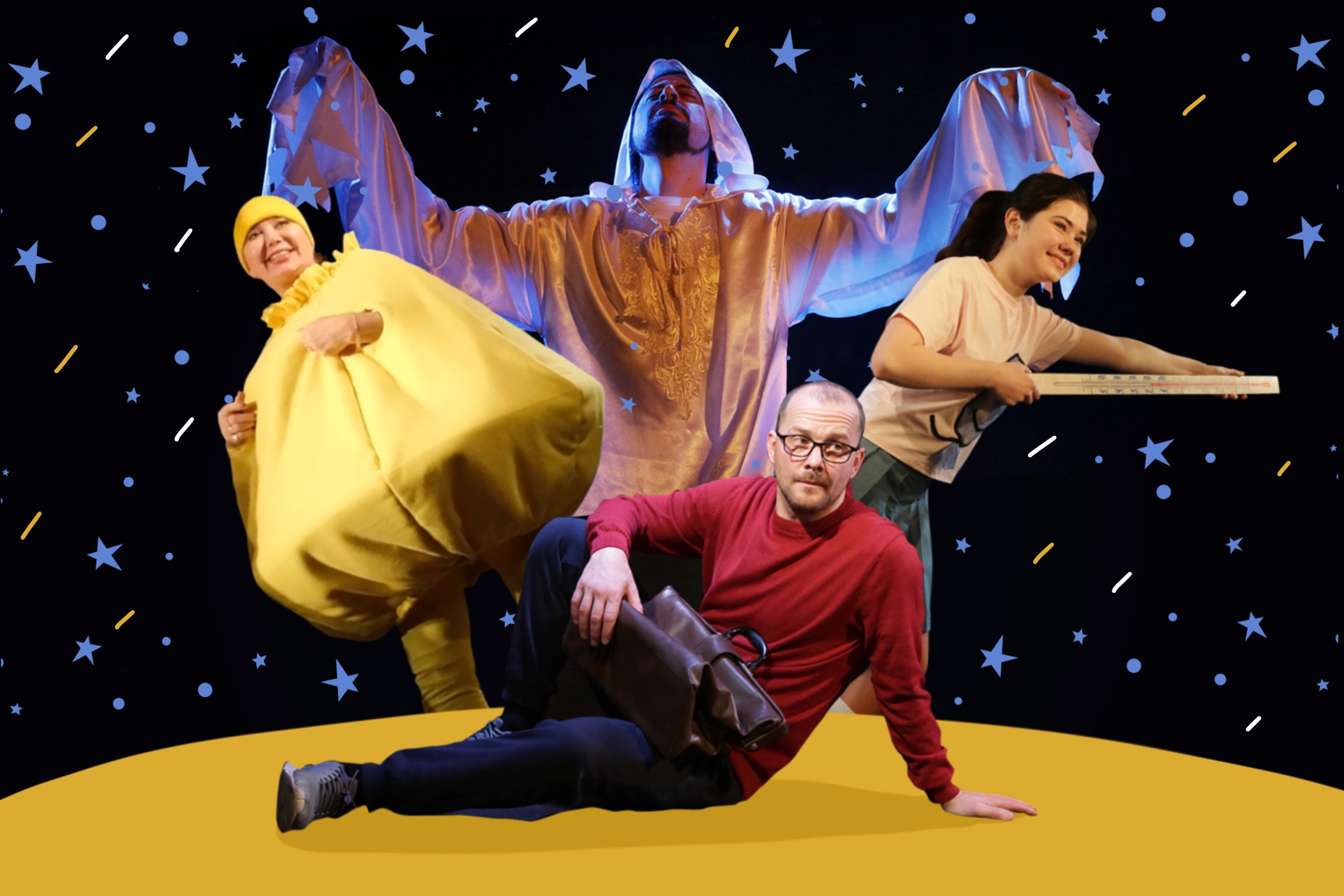 Зал темноватый и не очень новый, сидения похожи на школьные стулья, но с первых минут зрители погрузились в сказочную атмосферу, состоящую из самых разных жанров. Тут есть и страшные истории, и детектив, и история о любви, и даже единороги имели место быть. Знакомые сказочные персонажи предстали перед нами в новом амплуа.