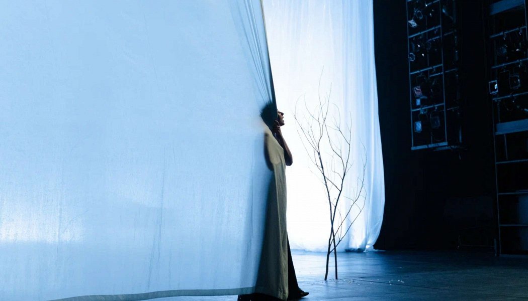 Великолепные режиссерские находки: нежелание занимать всё пространство сцены и одновременно выход за её пределы, закрытие и открытие занавеса между действиями, воздушность всей площадки.