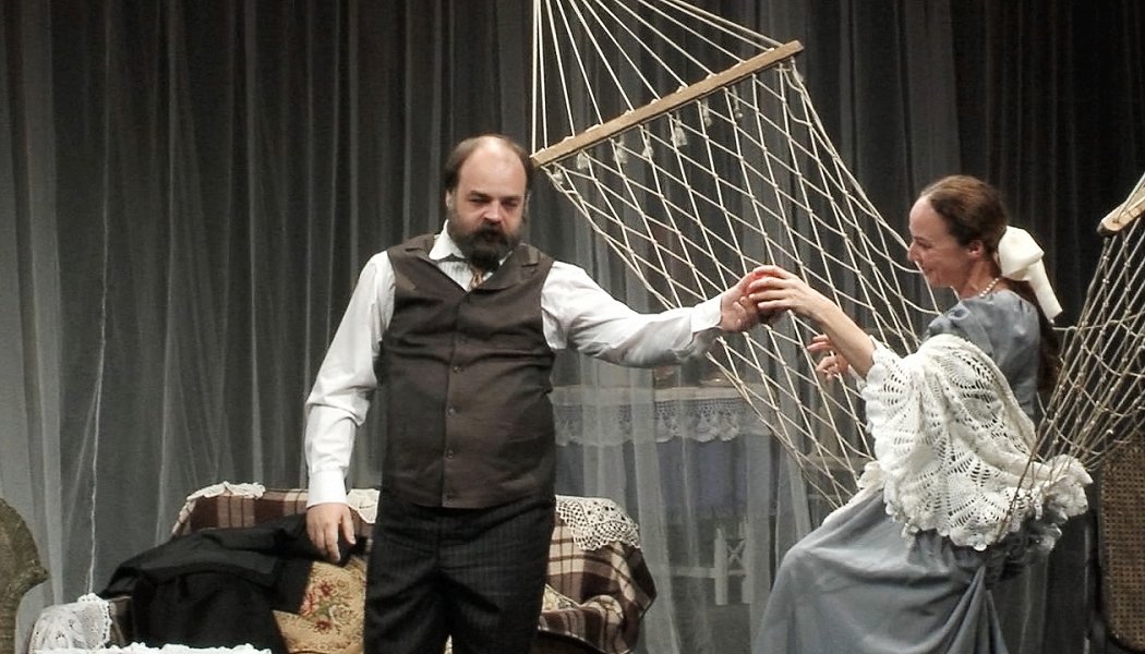 Спектакль, поставленный еще в студенческие годы первого призыва «фоменок», на заре 90-х, — самый старый в репертуаре Мастерской, но до сих пор один из самых пленительных. Пьеса Островского сыграна как легчайшее кружево: не то Тургенев, не то Чехов. Из патефона льется голос Паниной: «Как хорошо!», томная и беспечная Купавина (Полина Кутепова) порхает прямо в лапы саркастическому волку Беркутову (Карен Бадалов), недоверчивый добряк и увалень Лыняев (Юрий Степанов) окручен медоточивой хищницей Глафирой (Галина Тюнина) — сцена обольщения в гамаке уже цитируется в хрестоматиях отечественного театра.