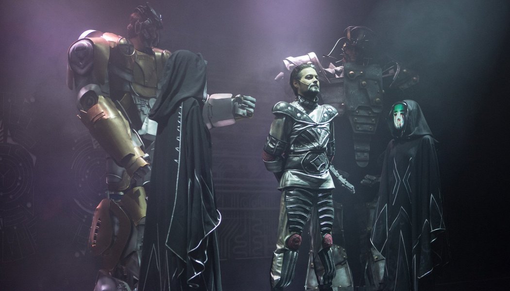 Гигантские роботы, светящиеся электронные маски, проекция мерцающего звездного неба, футуристические персонажи вроде космического осьминога и робота-собаки — всех деталей не перечислить, но вместе они создают вау-эффект даже у взрослого скушенного зрителя. Кажется, что ты действительно переносишься в другую галактику или альтернативную реальность.