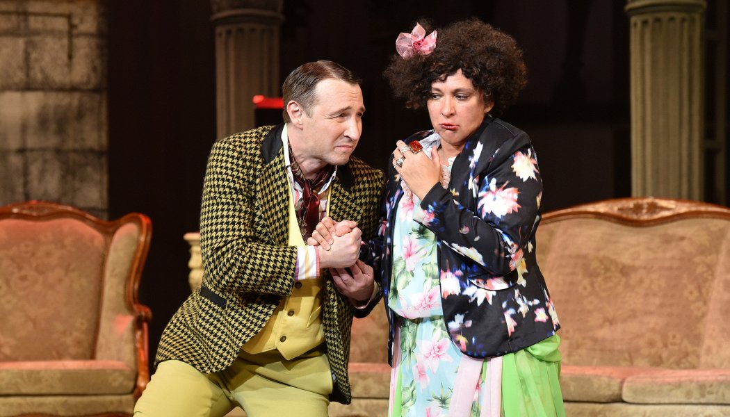Актер и телеведущий Дмитрий Хрусталев блестяще справился с ролью владельца маленькой цирюльни Свирид Петровича Голохвастова - забавного франта и охотника за приданным. Его герой старается выкрутиться из любых ситуаций. Для того, чтобы пустить пыль в глаза он умудряется дважды занять деньги у ростовщика - криминального авторитета позапрошлого века. С блеском повеса изворачивается, рядится, пытается обольстить, а при опасности дрожит от страха, что невольно вызывает симпатию. Как сумела это сделать и популярная актриса Олеся Железняк - богатая невеста Проня Прокоповна. С Голохвастовым у них получился неподражаемый комедийный дуэт, и к радости публики в пост-финале, когда афера уже раскрылась, они все-равно убегают вместе.