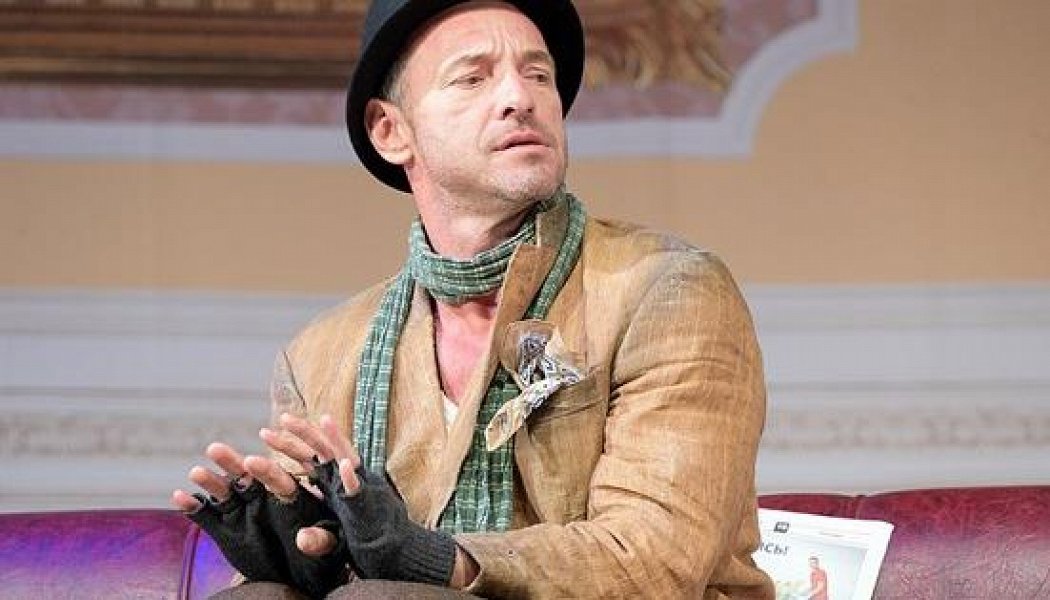 Дальше появляется бездомный, похожий на бывшего мужа и до антракта мы выслушиваем довольно занудные диалоги и повторяющиеся шутки. Бездомный (в лице Максима Дрозда) постоянно пытается выпить дорогой алкоголь ( к сожалению, после 5 раза становится не очень смешно) и повторяет "МААМА" обращаясь к портрету Королевы.