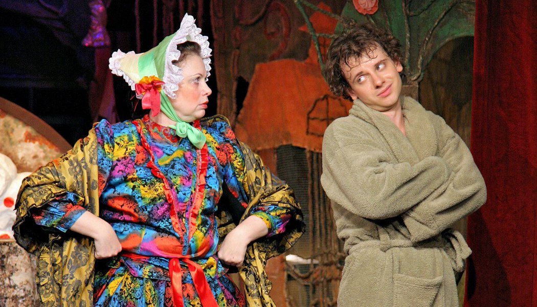 2) Спектакль, который поначалу словно с трудом выбирается из детских декораций, вдруг оживает, взрослеет (порой почти неприлично) и выкидывает всякие забавные коленца, а ты сидишь и смотришь на все это, расплываясь в улыбке. Второе действие - так и вообще пролетает моментально и заканчивается как-то слишком быстро.