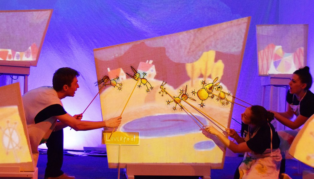 Оказывается, чтобы совершить кругосветное путешествие, познакомиться с эскимосами и увидеть северное сияние, достаточно войти в небольшую уютную палатку. Ведь любая, даже крошечная сцена — место волшебных преображений, оказавшись на ней, обычные пакеты из модного магазина выглядят небоскребами. Вт орая часть спектакля не менее увлекательна — это игра и мастер-класс, что еще можно сделать из бумаги.