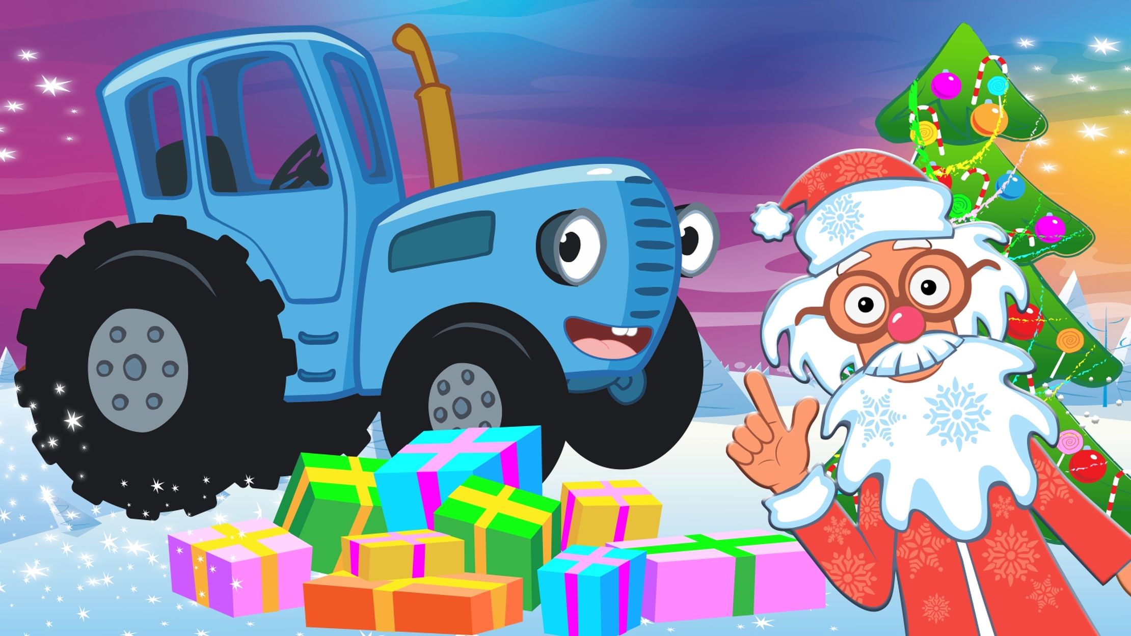 Синий трактор в гостях у Деда Мороза